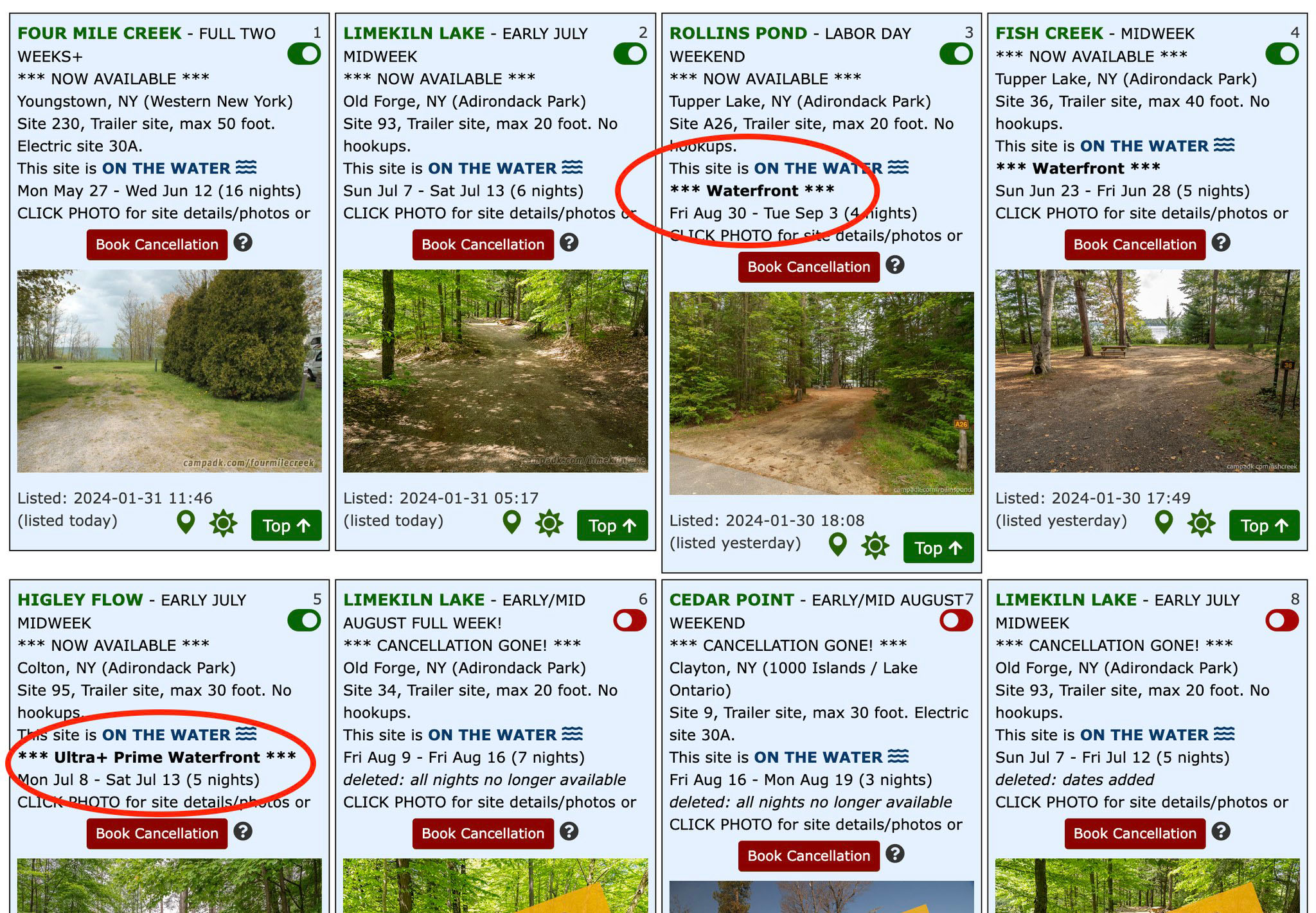 Sacandaga Campground, long over due! 1,800 photos are now available from this past spring's photoshoot of all sites. 2.5X zoom is also available for all new photos.